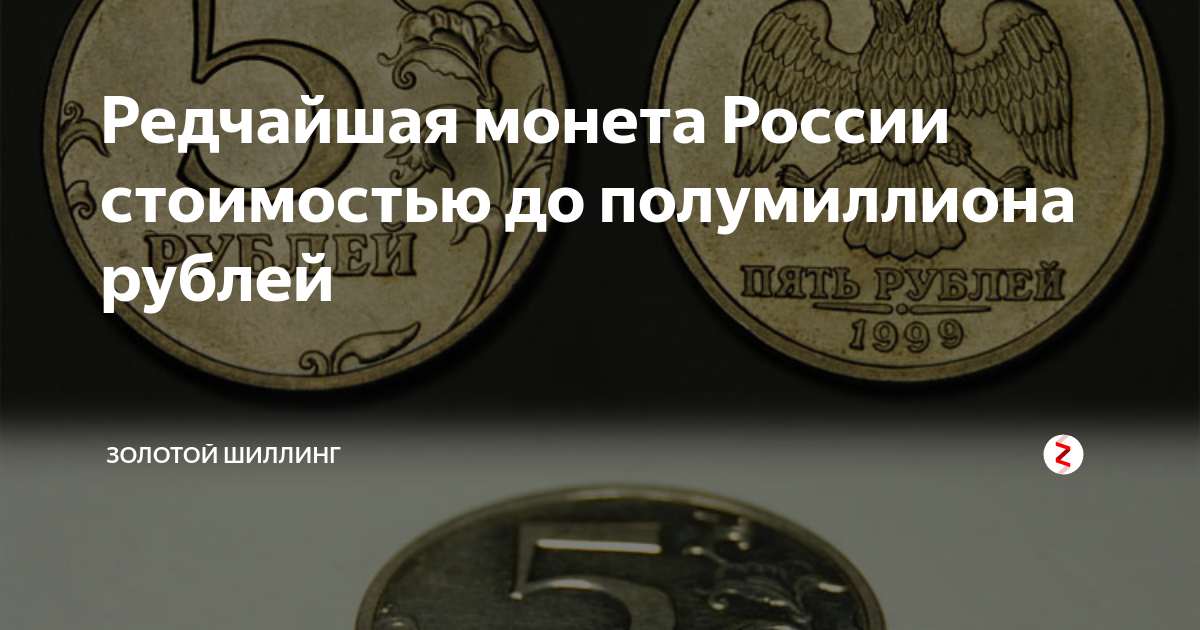 Редчайшая монета России стоимостью до полумиллиона рублей О существовании этой монеты долгое время велись споры. Говорили, что даже если она есть, то в обороте никогда не появится, ведь её отчеканили специально для богатых коллекционеров в нескольких экземплярах, а, следовательно, простым смертным её не видать. Но время показало, что все не так просто: загадочный пятак нашелся сначала в обычной копилке, а через несколько лет в горсти магазинной мелочи. С