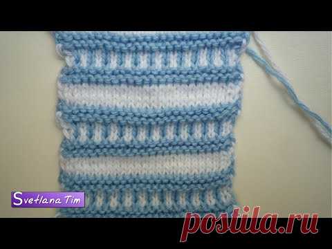 Жаккардовый узор. Горизонтальные полосочки. Вязание спицами # 196