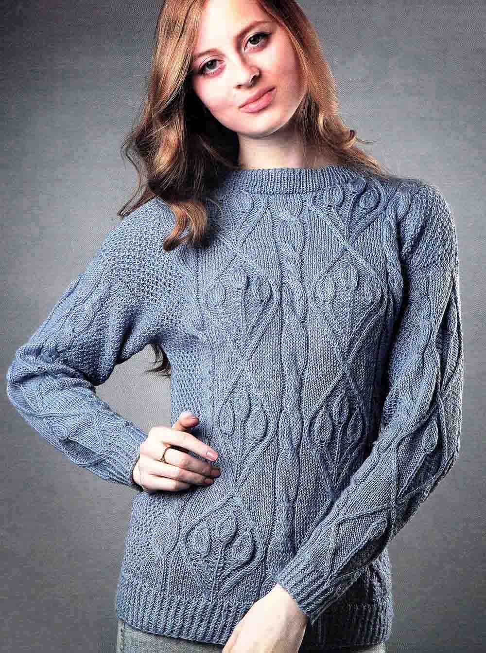 Пуловер с узором листья Размер: 38 https://vyazaniye.com/item/pulover-s-uzorom-listya.html #пуловер #пуловерспицами #вязаниеспицами #вязание #вязаныйпуловер #рукоделие #вязаниепуловера #handmade #knit #knitting