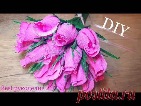 Розы из гофрированной бумаги. Букет на 8 марта / DIY