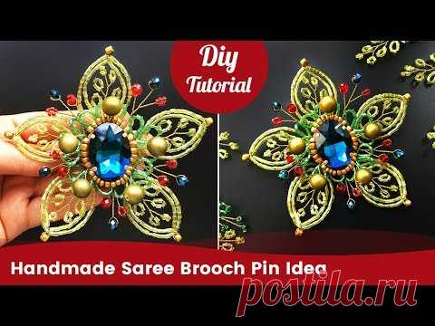 DIY Flower Brooch Pin Tutorial. Handmade Saree Brooch Pin Idea.
