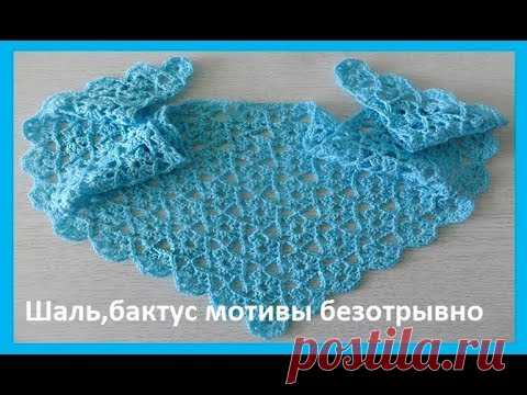 Шаль- бактус ,цветочные мотивы безотрывно, вязание крючком,crochet shawl(шаль №125)