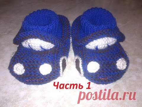 Пинетки спицами-вязание для мальчика.Пинетки - ТАЧКИ.Часть 1.Пинетки машинки спицами.
