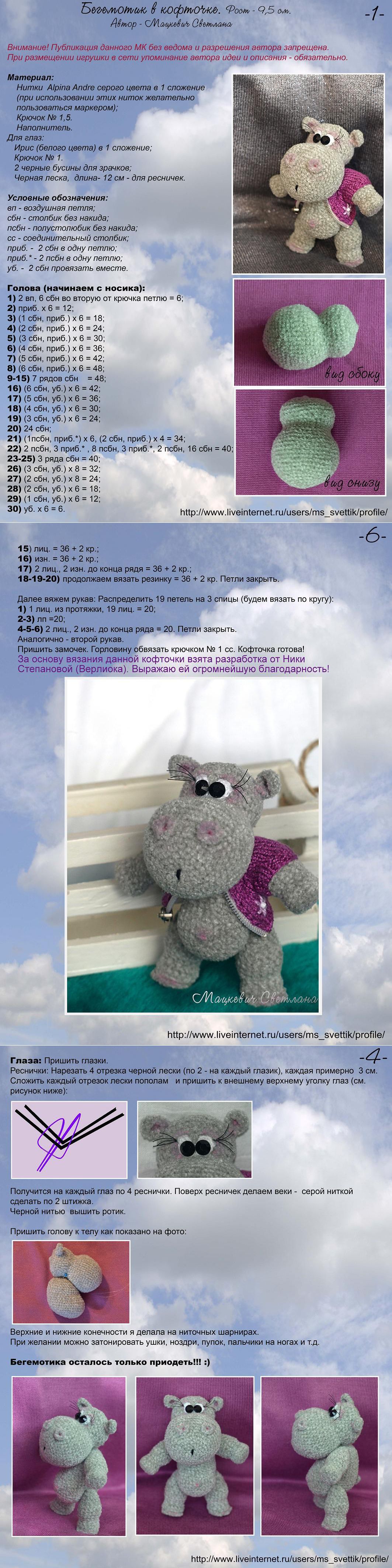 МК: Бегемотик в кофточке (вязаная игрушка) - Ярмарка Мастеров - ручная работа, handmade
