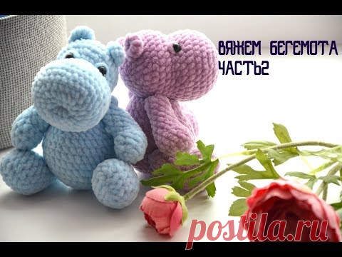 Бегемот из плюшевой пряжи. Вязаная игрушка. Продолжение