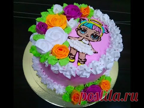 Торт КУКЛА ЛОЛ Как украсить торт кремом для девочки с розами Natalia Tort Sweet stories