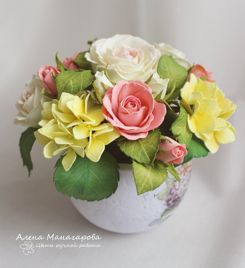 Интерьерная композиция с кустовыми розами и гортензией.Выполнена на заказ.Ручная работа.