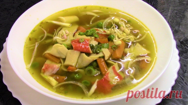 Очень вкусный Овощной суп с крабовым мясом в азиатском стиле. Постный рецепт.