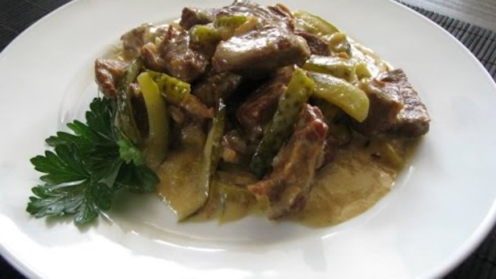Говядина с солеными огурцами и медом Снова рецепт из журнала «Школа гастронома». Необычное сочетание продуктов дает потрясающе вкусный результат. филе говядины — 800 г масло сливочное — 40 г масло растительное — 1 ст.л. лук репчатый — …