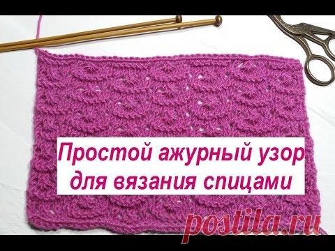 Простой ажурный узор спицами - видео. Легкий узор для начинающих. подходит для вязания детям