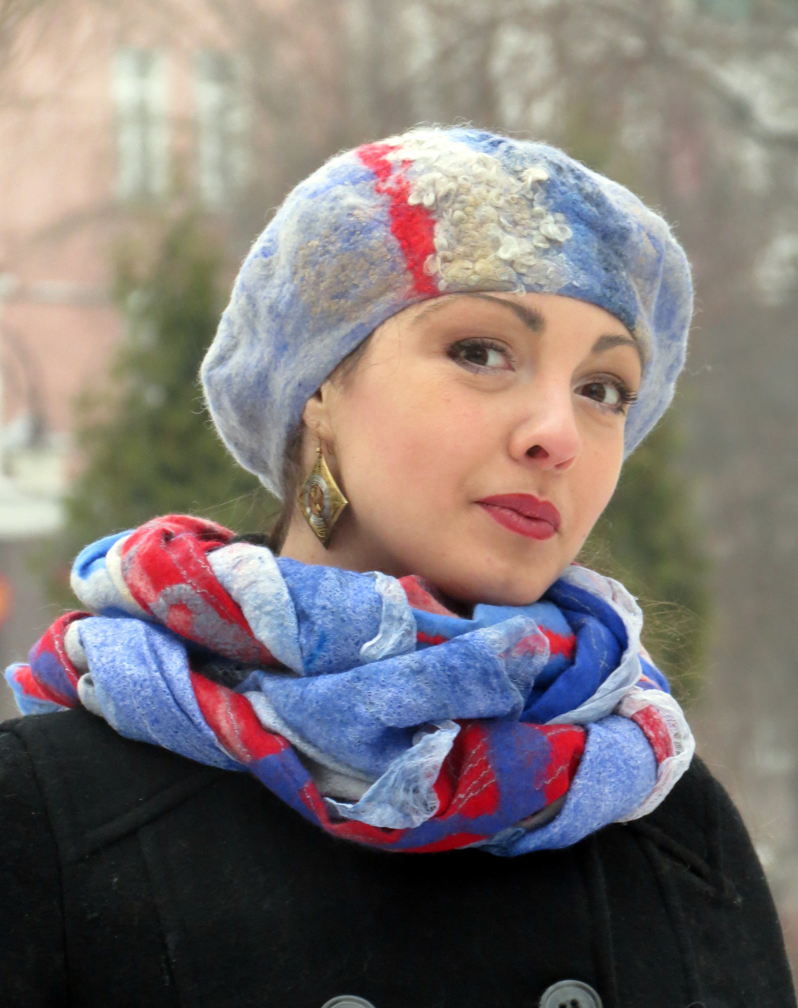 Комплект валяный "Три стихии" для Светланы.Шелк маргеланский (ручное крашение),, шерсть автсралийского мериноса,волокна натуральные.