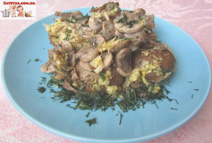 Картошка с грибами и чесноком в духовке (постный рецепт)