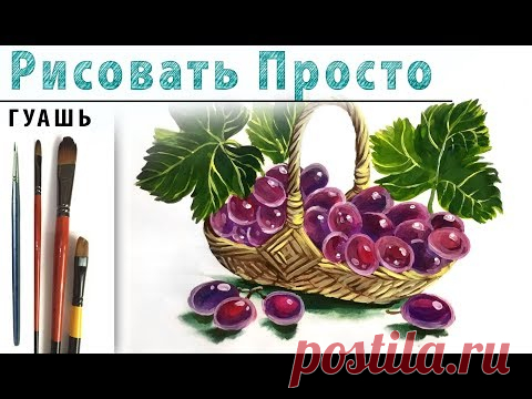 "Виноград в корзинке", как нарисовать фрукты. 🎨ГУАШЬ! Мастер-класс