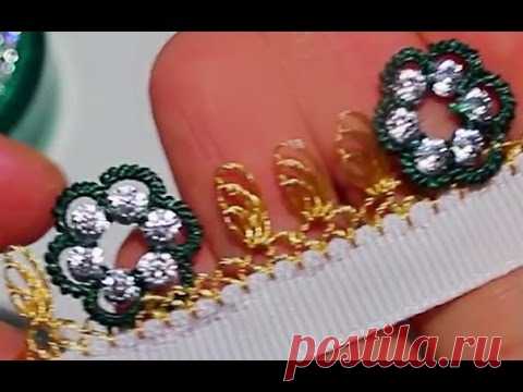 Турецкое игольное кружево ойяси цветок с бусинами. Урок № 29