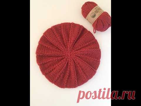 Вяжем женский берет спицами . Простой берет по кругу . Размер 55-56см