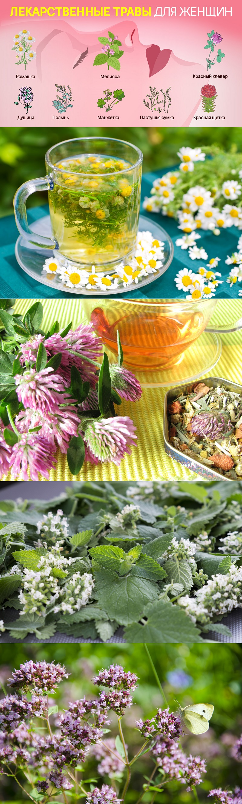 Ромашка манжетка душица клевер пастушья сумка