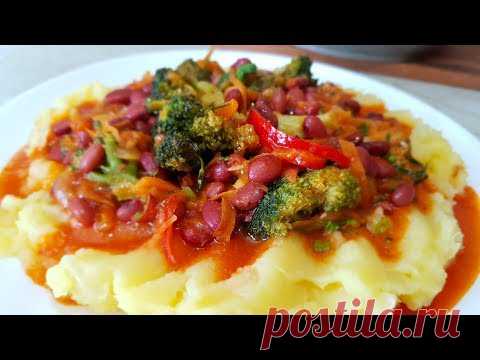 Брокколи с фасолью в томатном соусе, цыганка готовит. Постное блюдо. Gipsy cuisine.