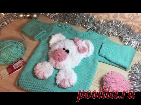 Детский свитер с мишкой спицами. Можно связать новый или обновить старый.