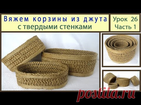 Вяжем крючком корзинку с жесткими стенками. Корзинка из джута для подарков. Урок 26 Часть 1