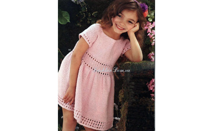 Чудесное платье для девочки Вязаное спицами чудесное платье для девочки. Описание