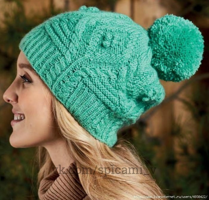 Вязаная шапка "Birgitz". Плотность вязания: 20 петель и 29 рядов = 10 см лицевой глади, выполненной спицами № 3.75; 24 петли и 36 рядов = 10 см рисунка вязания, выполненного спицами № 3.75. Замечание: Шапка вяжется снизу вверх. При выполнении убавлений для верхней части шапки при необходимости перейти на вязание обоюдоострыми спицами. Начало вязания Нижний край: Спицами № 3.25 набрать 120 петель. Осторожно соединить петли в круговой ряд. Поместить маркер в начало ряд...