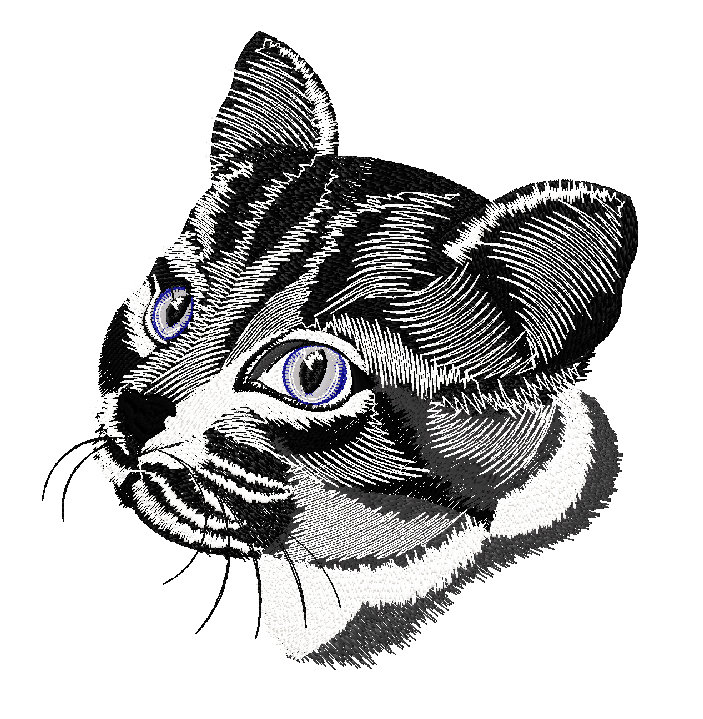E-chef - вышивка удивленный кот Располагается на кармане или на груди куртки или фартука, на рукаве. Выберите место, где вышить кота и размер вышивки.