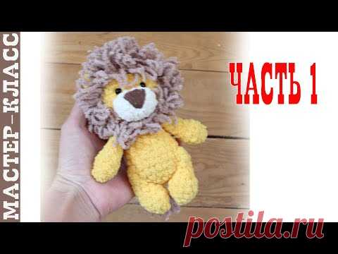 Игрушка амигуруми лев из плюшевой пряжи крючком львенок Часть 1