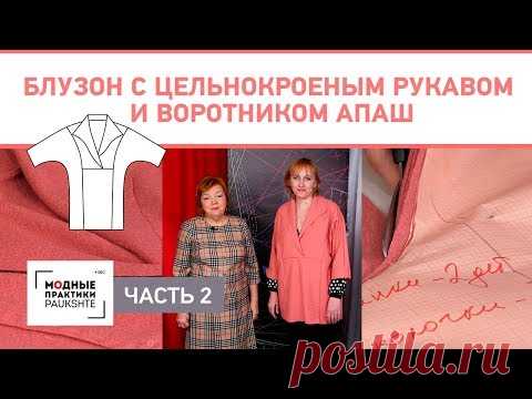 Блузон из лодена с цельнокроеным рукавом и воротником апаш. Раскрой, сметывание и примерка. Часть 2. - YouTube