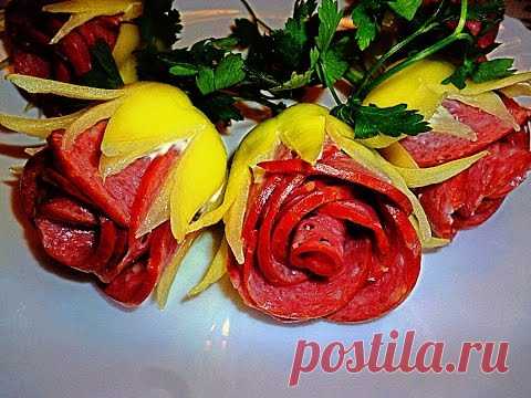HOW BEAUTIFUL CUT TOMATOES, PEPPER AND SAUSAGE! DECORATION OF VEGETABLES!