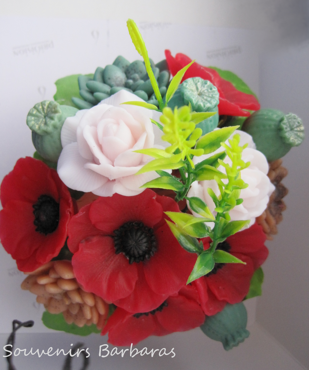 Сувенирный букет из маков,суккулентов и роз!Мыло ручной работы.