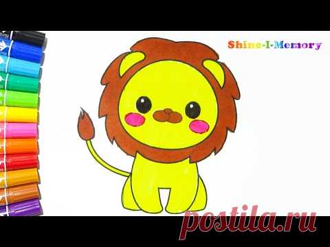 How to Draw Kawaii Easy Animal Lion for Kids, Learn Colouring and Painting Book