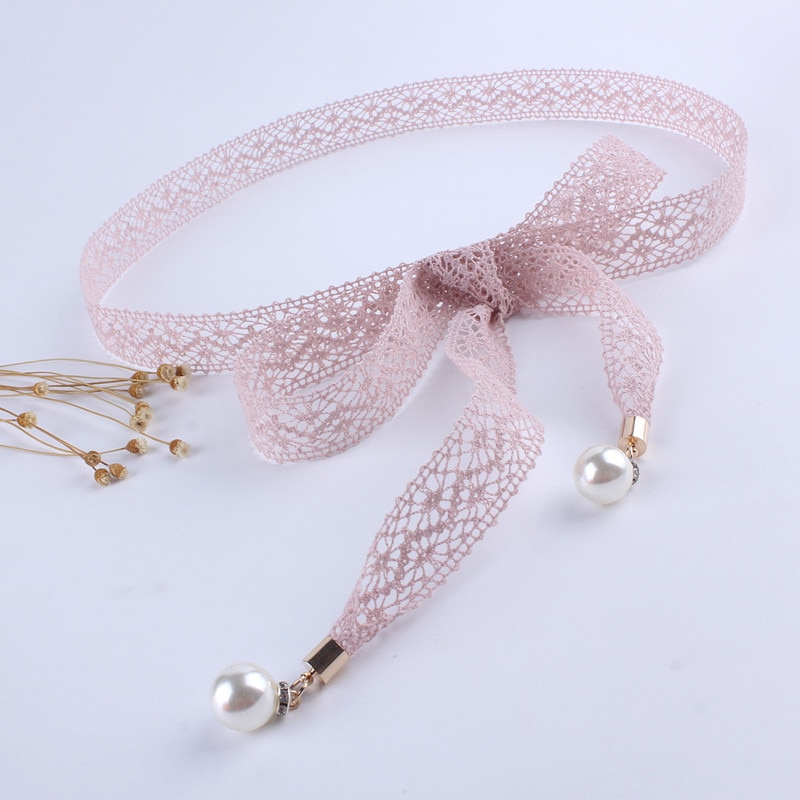 Женская мода кружева полый Пояс тонкий Жемчуг ремень веревка для платья пояс с кисточками пояс узел украшенный узкая лента черный купить в магазине TINGRUI Official Store на AliExpress