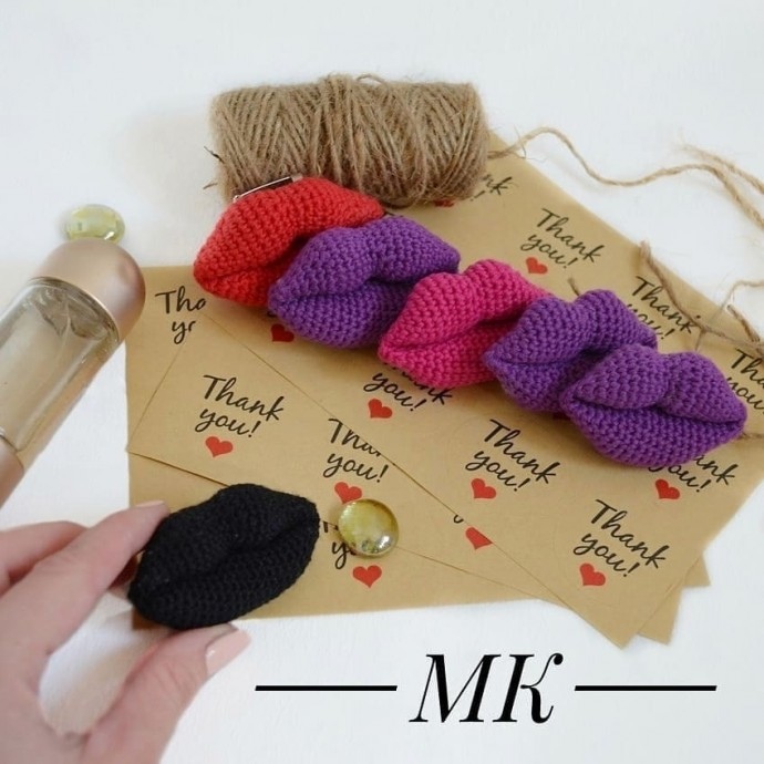 Вязаная брошка - стильная деталь! МАТЕРИАЛЫ: -крючок 1,5 -Alize "bella"/Yarn Art "ideal" - синтепух - палочка для набивки (можно использовать карандаш) - пришивная булавка для броши - 2 портновские булавки ( для скалывания деталей) ВЕРХНЯЯ ГУБА: 1) 4сбн в кольцо Амигуруми(4ст)
