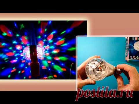 Вращающаяся диско лампа RGB с двойной головкой 110 V-220 V 3W magic ball. Dual Head Rotating LED RGB E27 lamp magic ball 3W - Unboxing and Test - YouTube https://youtu.be/n-YbJeWpTZ8