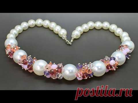 Колье из акриловых и стеклянных бусин мастер класс DIY Necklace from crystals beads