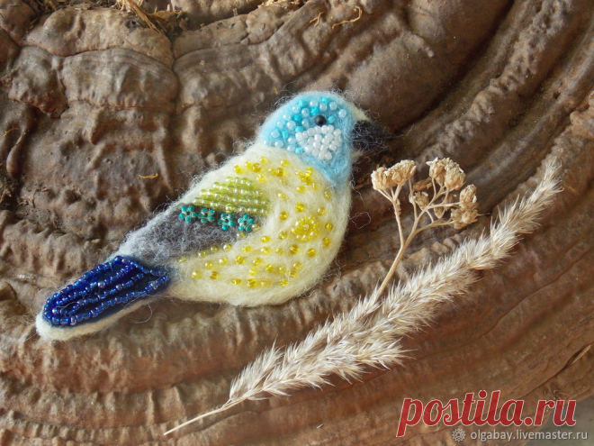 Делаем брошь «Синичка» из войлока и бисера Новичок в валянии? Хотите сделать эксклюзивное украшение? Нет ничего проще. Предлагаю вам способ как сделать брошь, используя метод трафаретов. Вам понадобятся инструменты для валяния, рисунок птицы. Войлок (у меня цвета: молочный, темно-синий, голубой и коричнево-белый микс)...