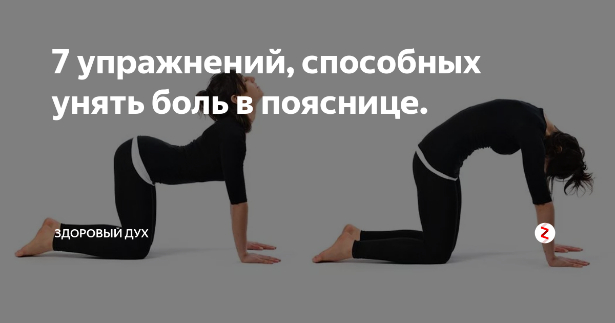 7 упражнений, способных унять боль в пояснице. Почти все люди сталкивались с таким неприятным явлением, как боль в поясничном отделе позвоночника. Сегодня мы составили список нагрузок, которые способствуют нормализации состояния.