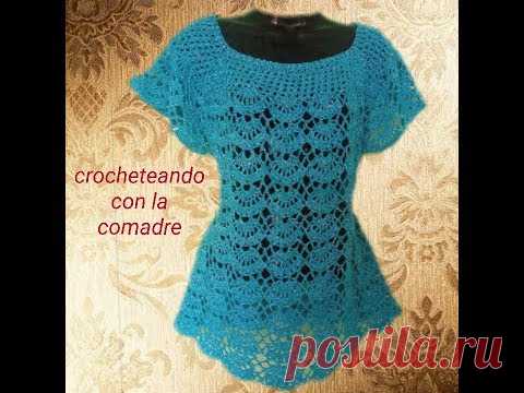 blusa abanicos talla L 1a Parte facil y rapido crocheteando con la comadre