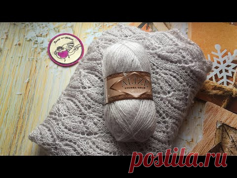 Красивый палантин спицами. МК по ажурному узору.