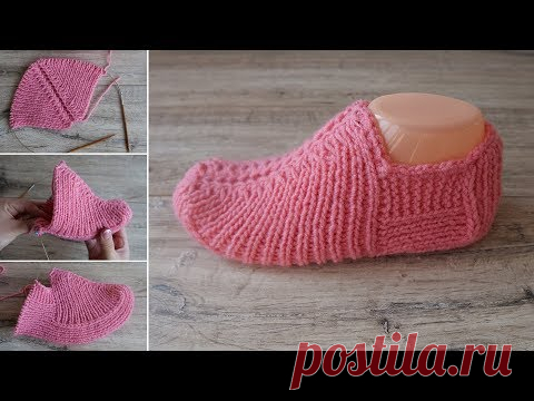 Бесшовные удобные следки спицами | Seamless slippers knitting pattern