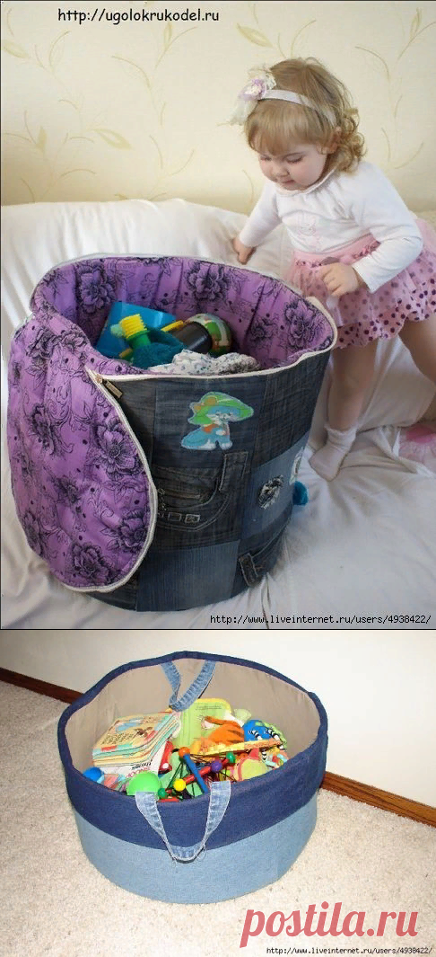 Переделки: Корзины для игрушек из старых джинсов — Делаем руками