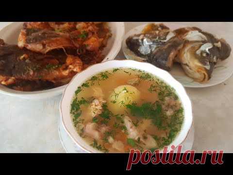 Уха и жареная рыба цыганка готовит. Gipsy cuisine.