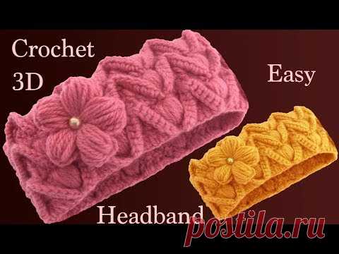 Diadema con flor a Crochet en Punto 3D con relieves tejido tallermanualperu