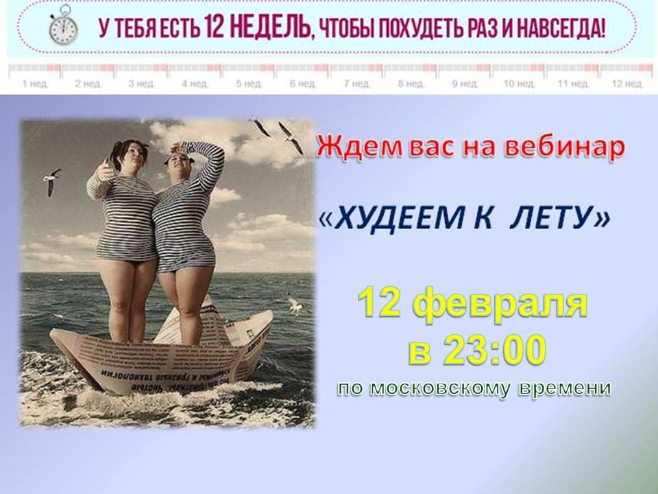 Милые Женщины! Уже СЕГОДНЯ делай то, о чем другие будут думать завтра! И завтра ты будешь иметь результат, о котором другие так и будут мечтать..... Сегодня, в СРЕДУ, 12 февраля в 23.00 час по Москве приглашаю на занятие «ИСКУССТВО БЫТЬ СТРОЙНОЙ» Это ссылка на мой мини-сайт http://4.ak-pitaniya.com/ откуда Вы сможете зайти на занятие. Для посещения занятия необходимо: 1) Ввести свое имя и фамилию, 2) Нажать кнопку "ВХОД" С уважением, тренер по питанию Тамара Козубенко