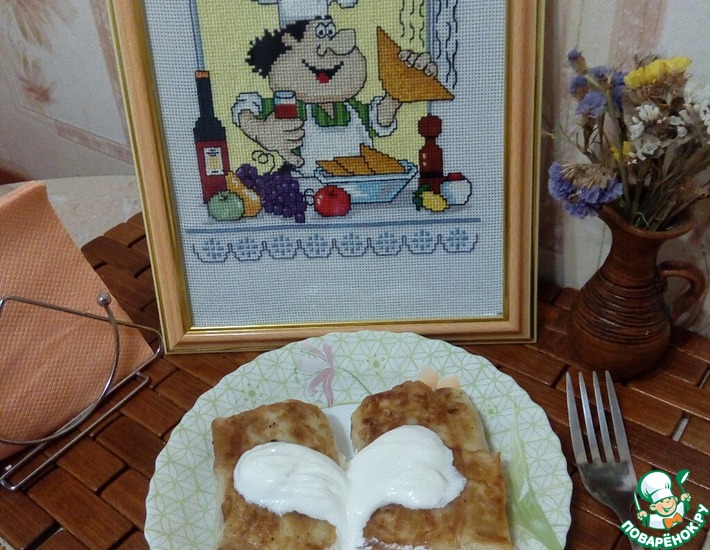 - Обжарить готовые блины на смеси растительного и сливочного масел до румяной корочки... и можно подавать к столу!! Мы любим со сметаной!