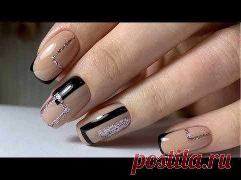 Чёрный ФРЕНЧ и геометрия на клиенте. Гель краска+гель лак= Идеальный френч. Комби маникюр.