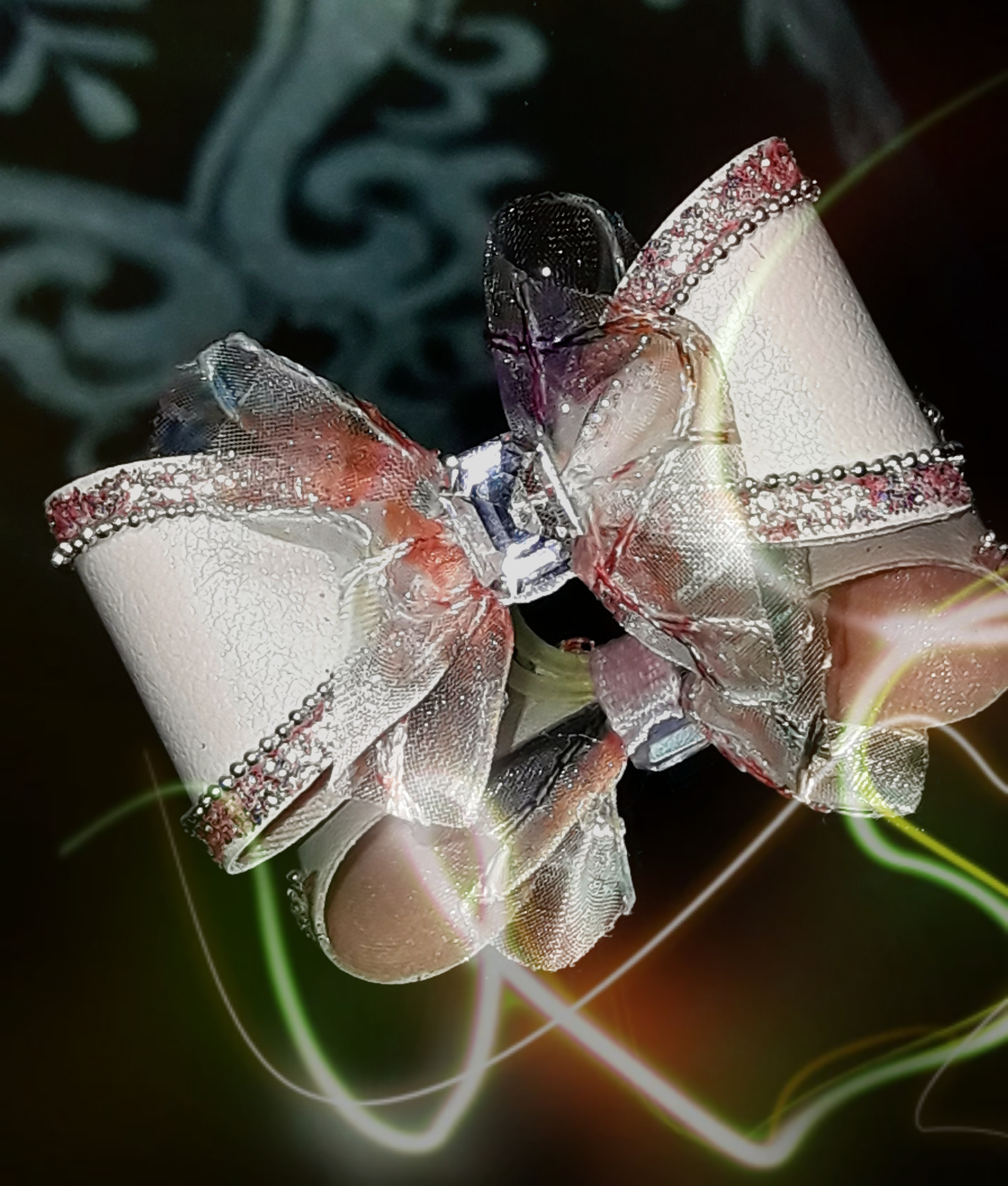 Бантики для ши-тцу! Уменьшенная флрма( 2.0х4.0) с одним слоем из экокожи и вторым из органзы( воздушным, невесомым...).Бантик такой формы смотрится легким, ненавязчивым, не нависает над " мордой лица"😊собаки, не отвлекает внимание от формы головы ши- тцу. Цвет основания и отделки подбираю не броский...в тонах окраса собаки....хотя возможно исполнение и в ярких цветах( по желанию владельца) Цена одного бантика 700руб. При заказе двух бантиков, третий в подарок