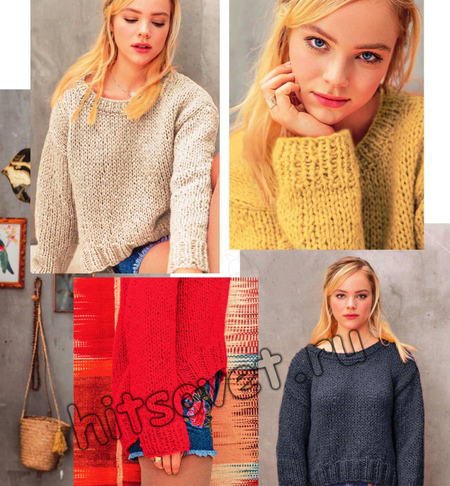 Модный джемпер лицевой гладью - Хитсовет Вязание спицами для девушки модного джемпера лицевой гладью из толстой пряжи с пошаговым бесплатным описанием. Размеры джемпера: 34-36 (38-40, 42-44, 46-48, 50-52). Вам потребуется: 9 (10, 10, 11, 11) мотков ярко-красной,светло-жёлтой, тёмно-серой или кремовой пряжи Phil Maxi Mohair, состоящей из 40% акрила, 30% мохера, 30% полиамида, длинойнити 60 метров в 50 граммах; спицы № 9 …