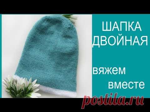 Шапка двойная, двусторонняя спицами. Бини двойная. Простой способ. Мастер-класс.
