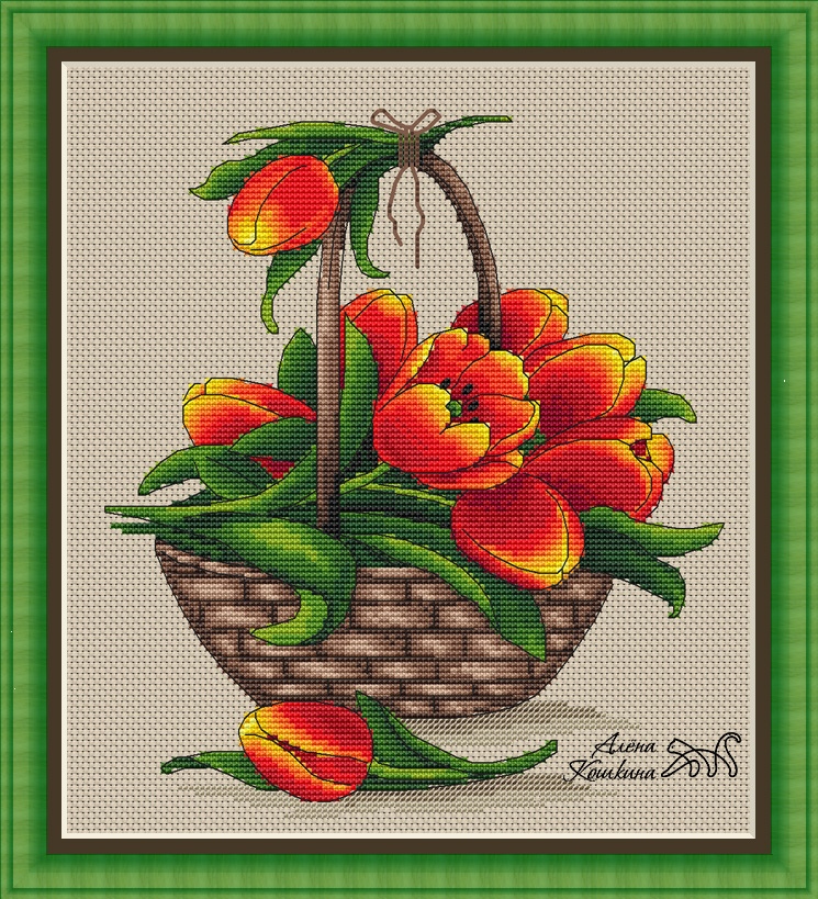 Cesto con tulipanes Tamaño 111 * 127 cruces Sobre 14 lienzo 20 * 23 cm Contorno recomendado Aida 3706/770, Aida 3279/154 Hilos DMS / PNK con un total de 26 colores de ellos 0 mezclas Expandir texto ...